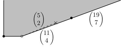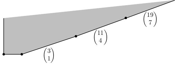 where we label edges by a vector parallel to them. Rationally blowing down the central \(-4\)-curve, which lives over the edge parallel to \((3,1)\), we get: