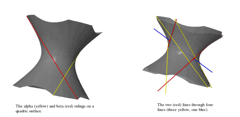 \(C\)) lie on a quadric surface. Recall that a quadric surface is ruled