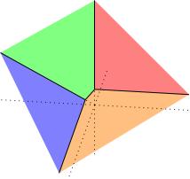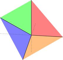 The four Weil-but-not-Cartier divisors \(x=z=0\), \(x=w=0\), \(y=z=0\), \(y=w=0\) project to the four faces of this cone. Let's pick one of them, say \(x=w=0\) (which projects to the horizontal face). What does it mean to "blow-up" this divisor? In symplectic geometry, blowing up a divisor means you cut out a neighbourhood of the divisor, observe that the boundary of the neighbourhood has a characteristic foliation whose leaves are closed circles, and collapse these circles down to points. In the toric picture, the neighbourhood of this divisor is just the set of points with \(\mu_3<\epsilon\) for some \(\epsilon\). When you cut it out and collapse the characteristic foliation ("symplectic cut") you get another toric variety whose moment polytope is obtained by discarding everything below \(\mu_3=\epsilon\). If you look at this polytope, you get exactly the polytope for the small resolution.