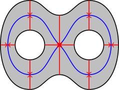 and let \(X\) be the blue figure 8 (drawn as a subset of